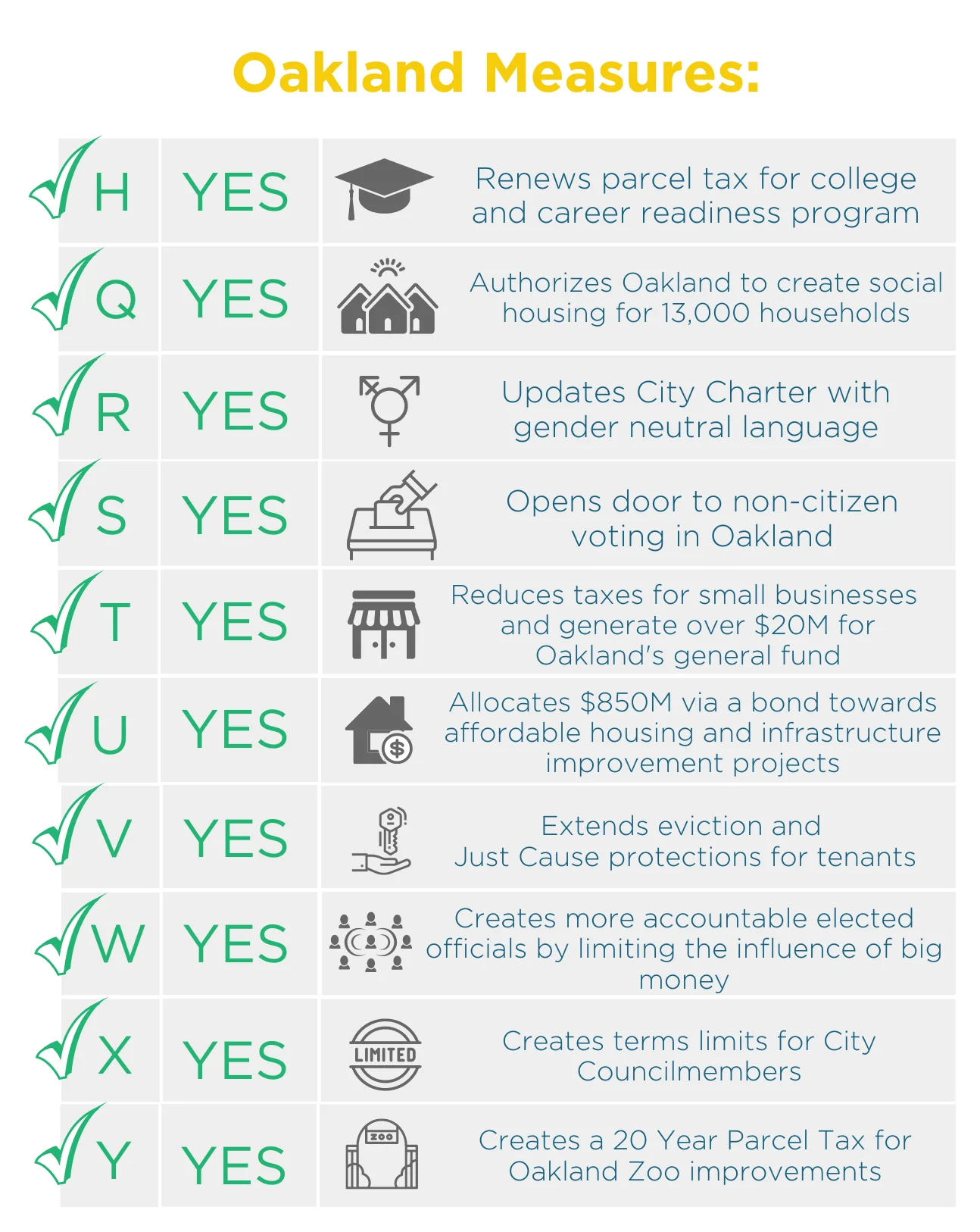 Measure Q will authorize the City of Oakland to develop, construct or acquire 13,000 low rent residential units in social housing projects for the purpose of providing affordable rental housing to low-income households and individuals. This is the first step needed to create social housing, an important tool for addressing our housing crisis. California law requires local municipalities to let voters decide if it is appropriate to allow the acquiring of affordable housing.