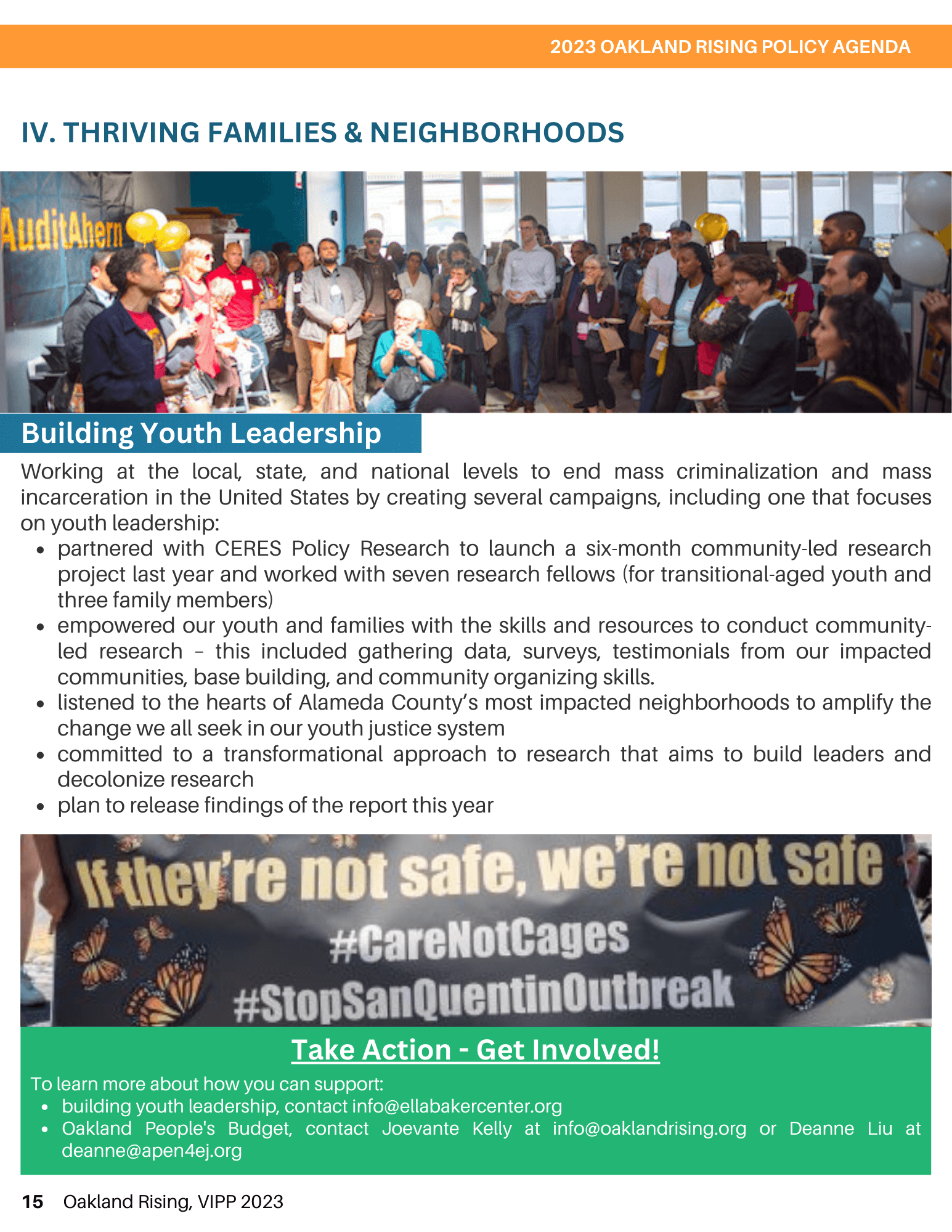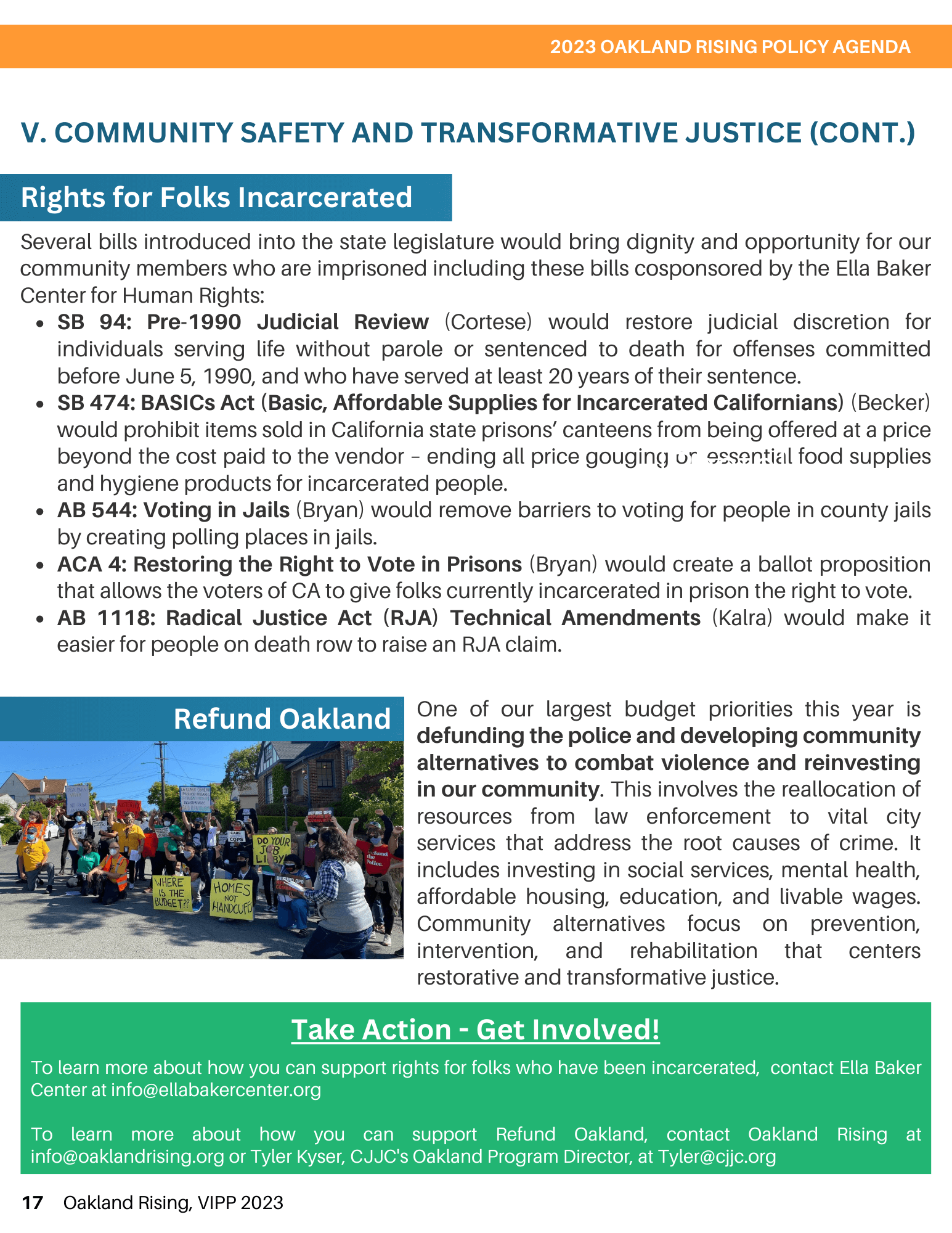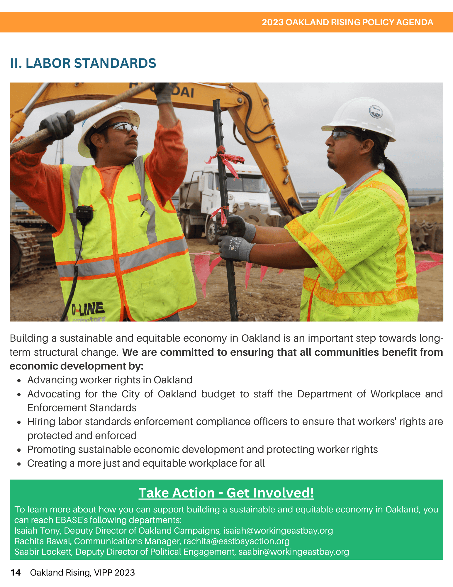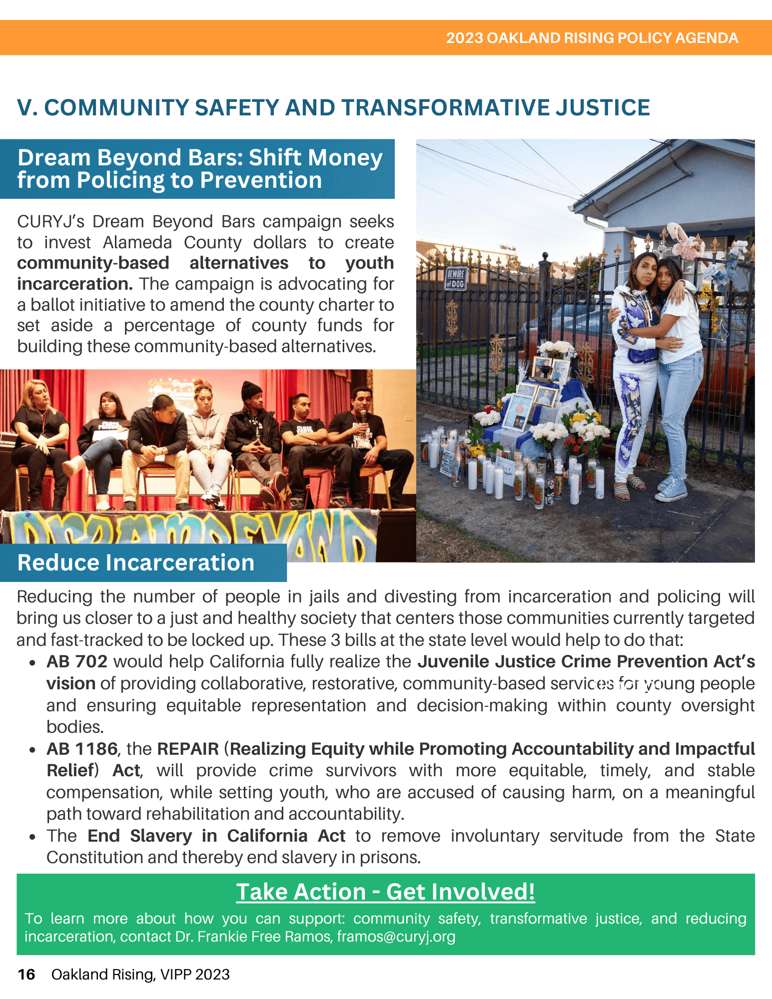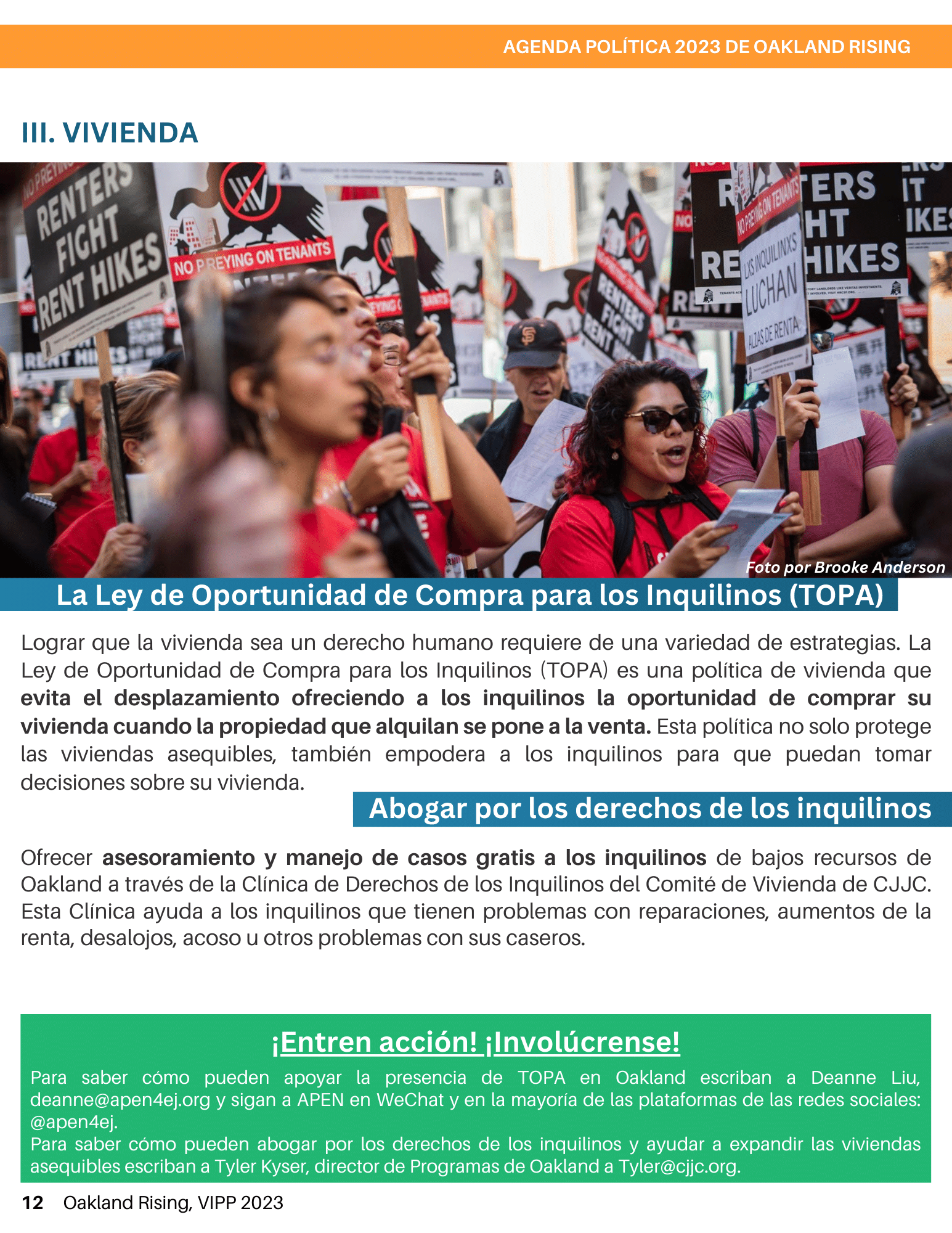 Para obtener una comprensión más profunda de nuestro compromiso de resistir, proteger y avanzar en este momento político, lo invitamos a explorar nuestra Visión, Problemas y Plataforma de Políticas para 2023. Juntos, estamos avanzando hacia un Oakland más equitativo y justo, y nos mantenemos firmes en nuestra búsqueda del cambio, un voto, una reunión, una marcha a la vez.